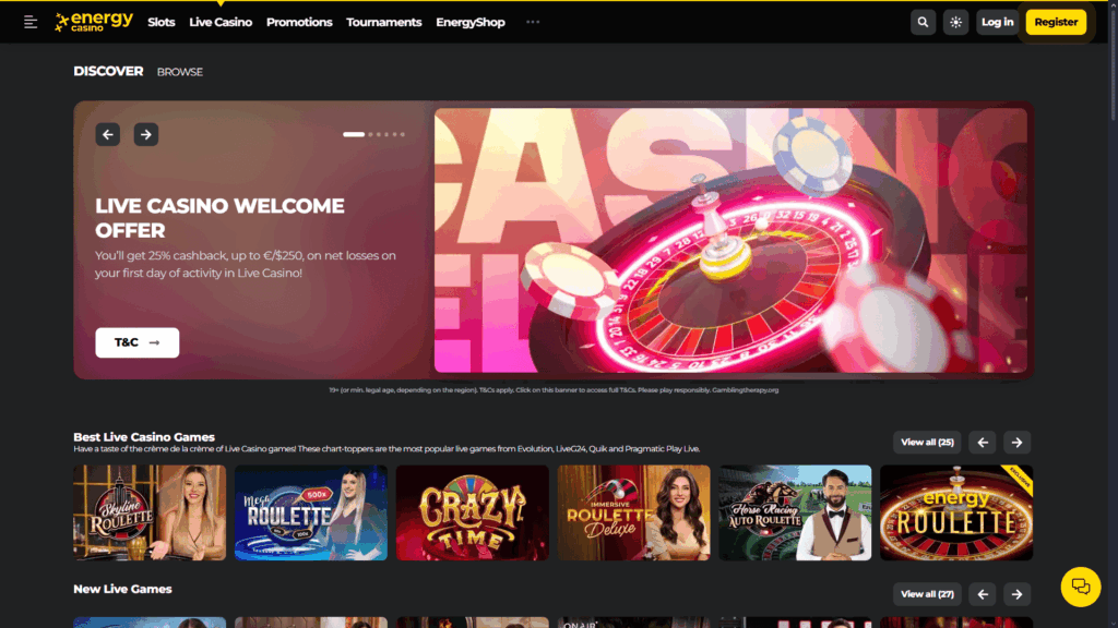 250+ Blackjack tables, 50+ Roulette Tables, 30+ Live Game Shows, almost one hundred baccarat Live Dealers and a few poker tables make an astonishing collection that players love at Energy Casino. Live Dealers are primarily provided by Evolution Gaming and Pragmatic Play, with some smaller studios entering this arena in recent months. The section is divided into several useful subsections, which makes navigating to high-stakes, VIP, and regular tables a real joy.